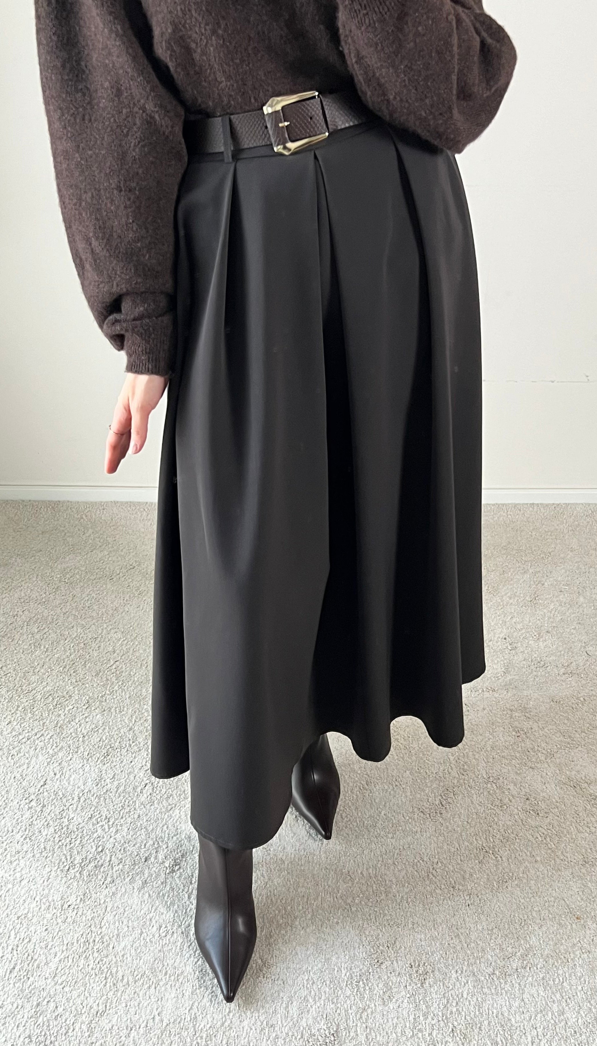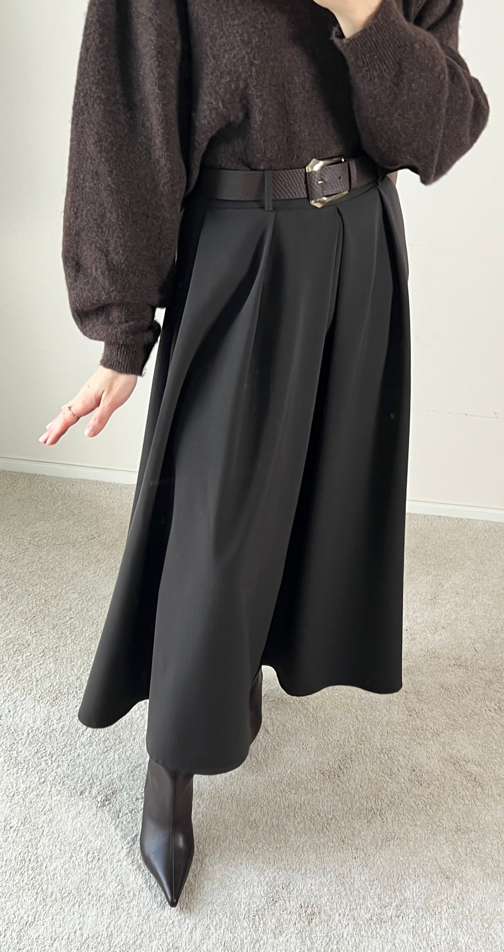 Dieser elegante Maxi-Rock besticht durch seine zeitlose Silhouette und hochwertige Verarbeitung. Das fließende Material schmeichelt jeder Figur und bietet maximale Bewegungsfreiheit für den Alltag. Der integrierte Gürtel betont die Taille und ermöglicht individuelle Styling-Optionen. Mit seiner dunkelbraunen Farbe passt dieser Rock mühelos zu verschiedenen Oberteilen und Anlässen – von casual bis elegant. Ein Must-Have für die Garderobe anspruchsvoller Frauen, die Qualität und Stil schätzen.